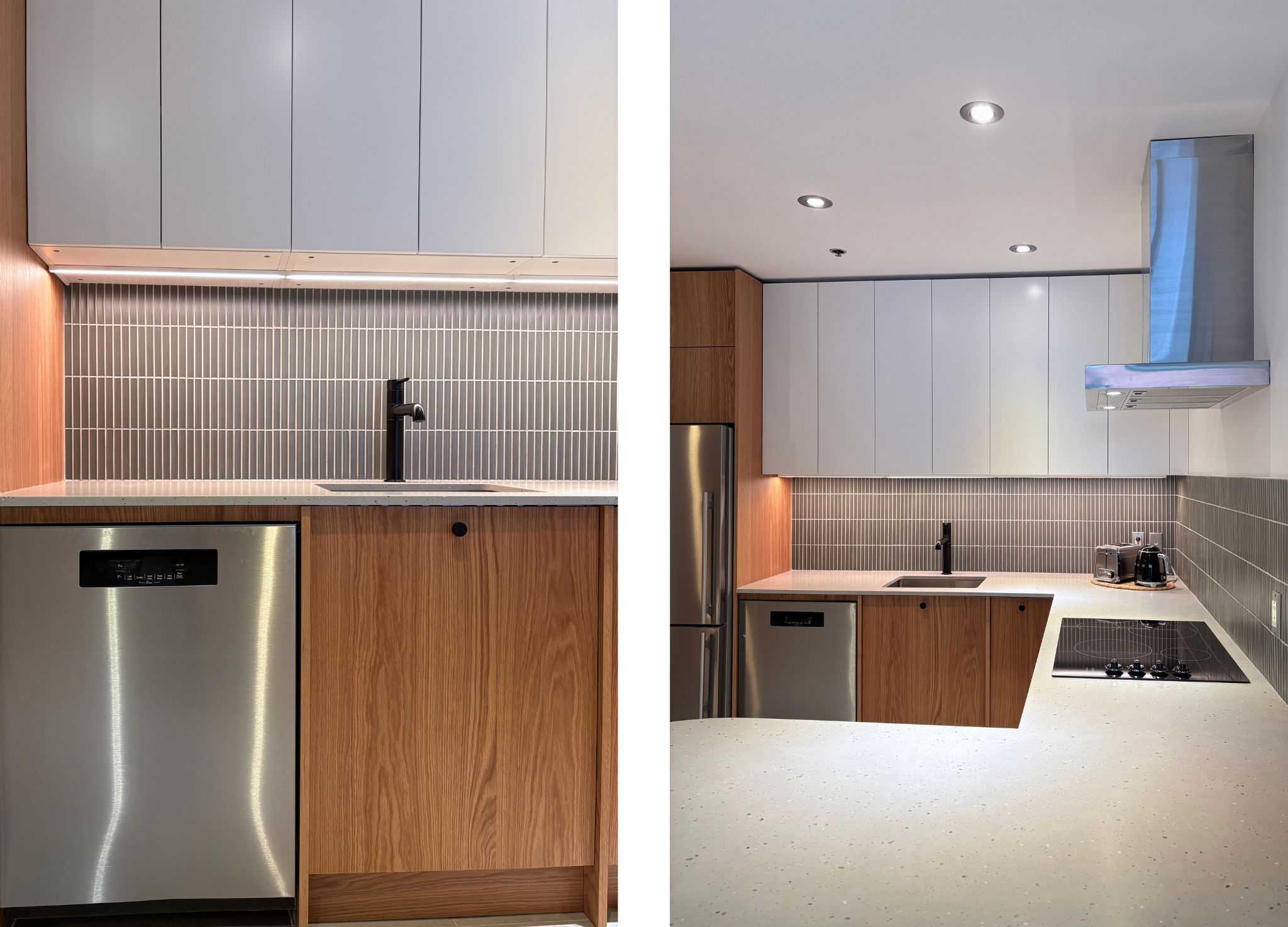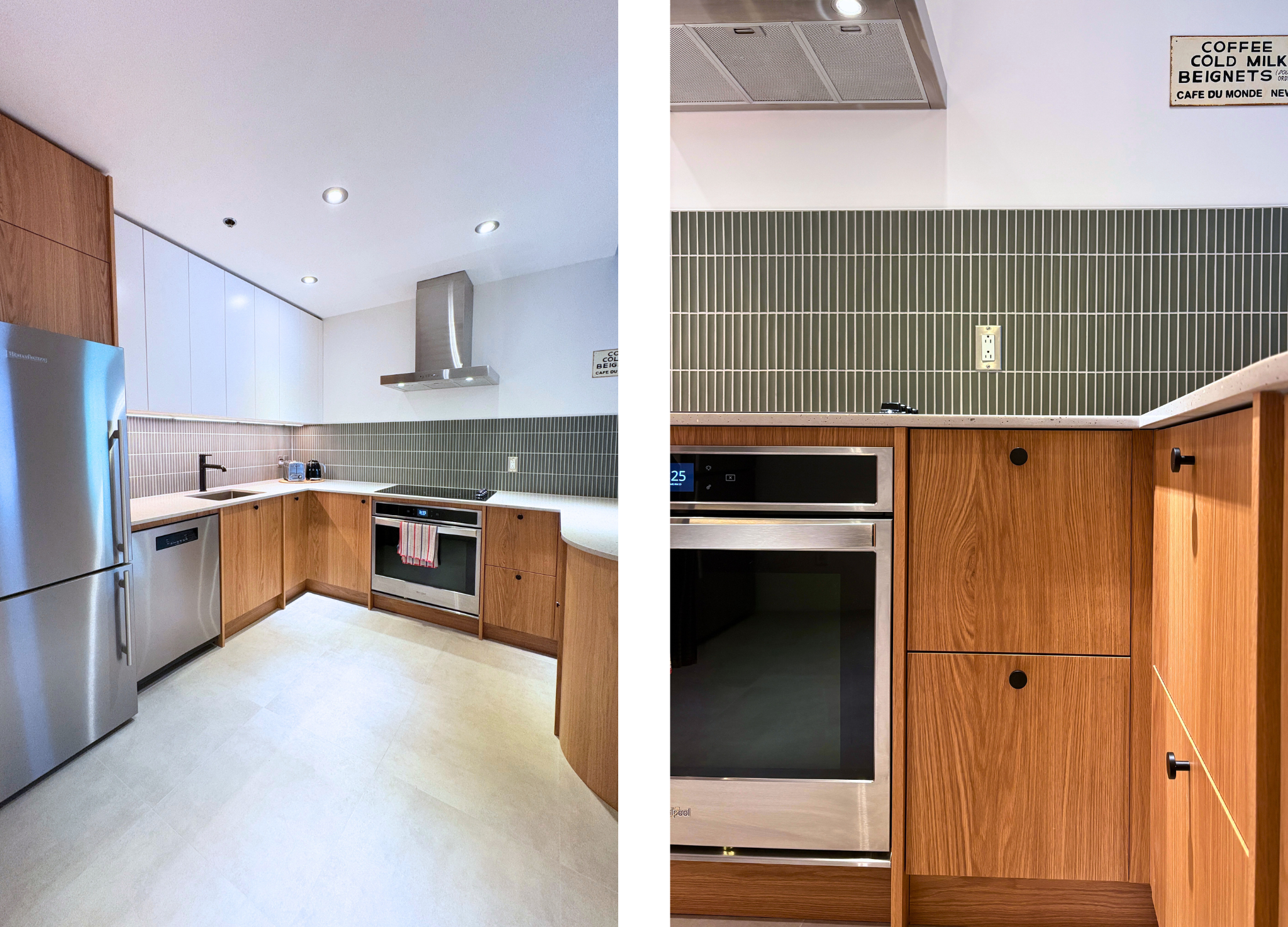 The type of wood cut plays a key role in defining the look and character of a kitchen. The Molière Project is a perfect example, showcasing a plain cut known for its wide, natural grain that brings warmth and visual richness to the space. In contrast, the rift cut features a straight, uniform grain, ideal for a clean, contemporary style.