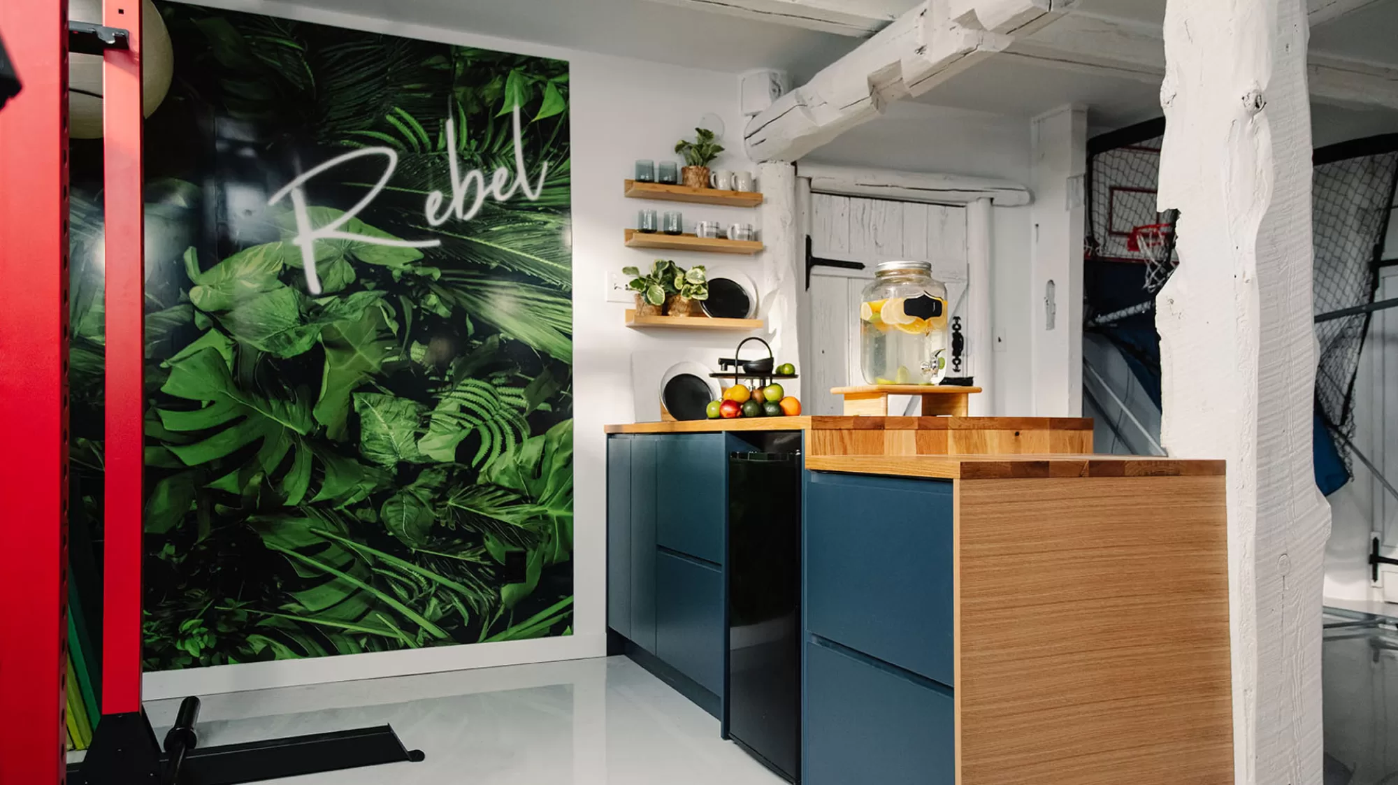 With its mini fridge and convenient sink, the juice bar allows the owners to hydrate during your workout and entertain without any hassle.