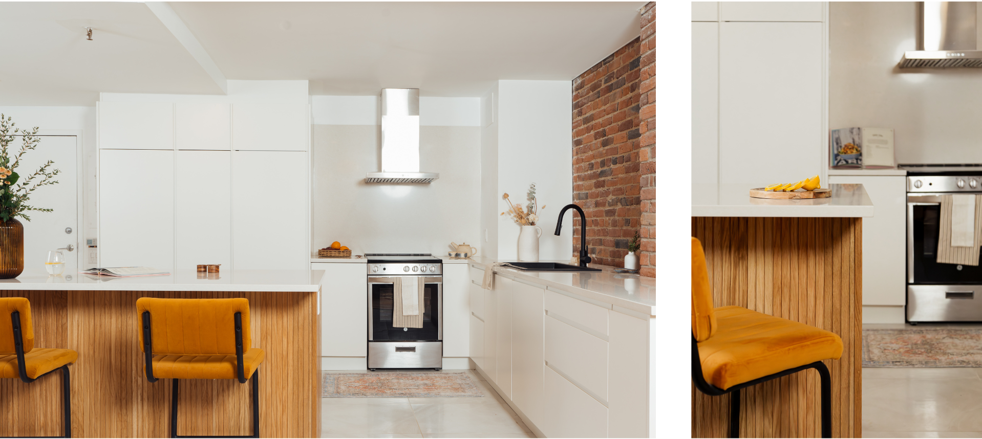 A kitchen that exudes well-being! With its clean surfaces, modern accents, and brick wall, this room invites tranquility and culinary creativity. A minimalist and warm design that sparks dreams!