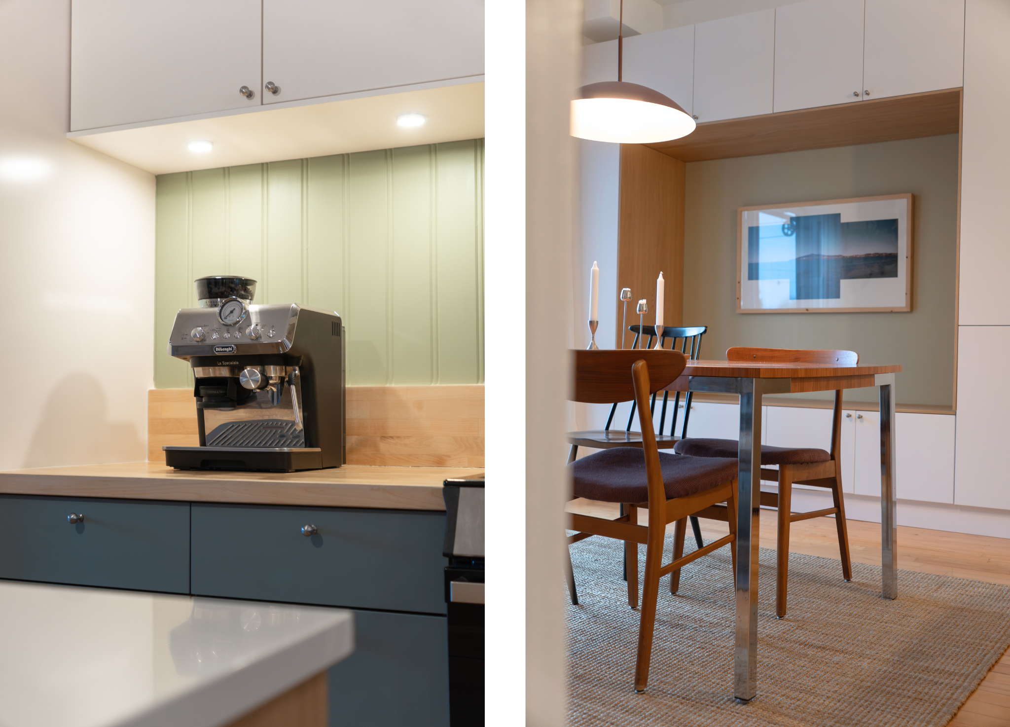 Dans la cuisine du Projet Henri-Julien, la modernité s'exprime à travers des lignes nettes et des façades Slab en polymère, tandis que la présence du bois et des teintes douces apporte une chaleur naturelle à l'espace. Les surfaces continues et le poignées assurent une lecture fluide du design, sans compromettre le confort au quotidien.