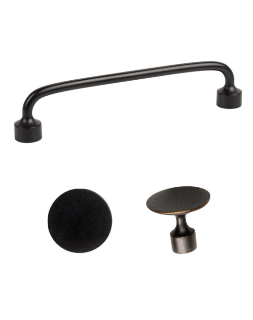 Ce bouton de forme arrondie arbore un pied cylindrique qui permet une installation discrète et simple sur les tiroirs et portes de placards. Disponible en quatre finitions (or brossé, noir mat, étain et laiton antique), ce modèle peut être assorti à de nombreuses couleurs de mobilier.